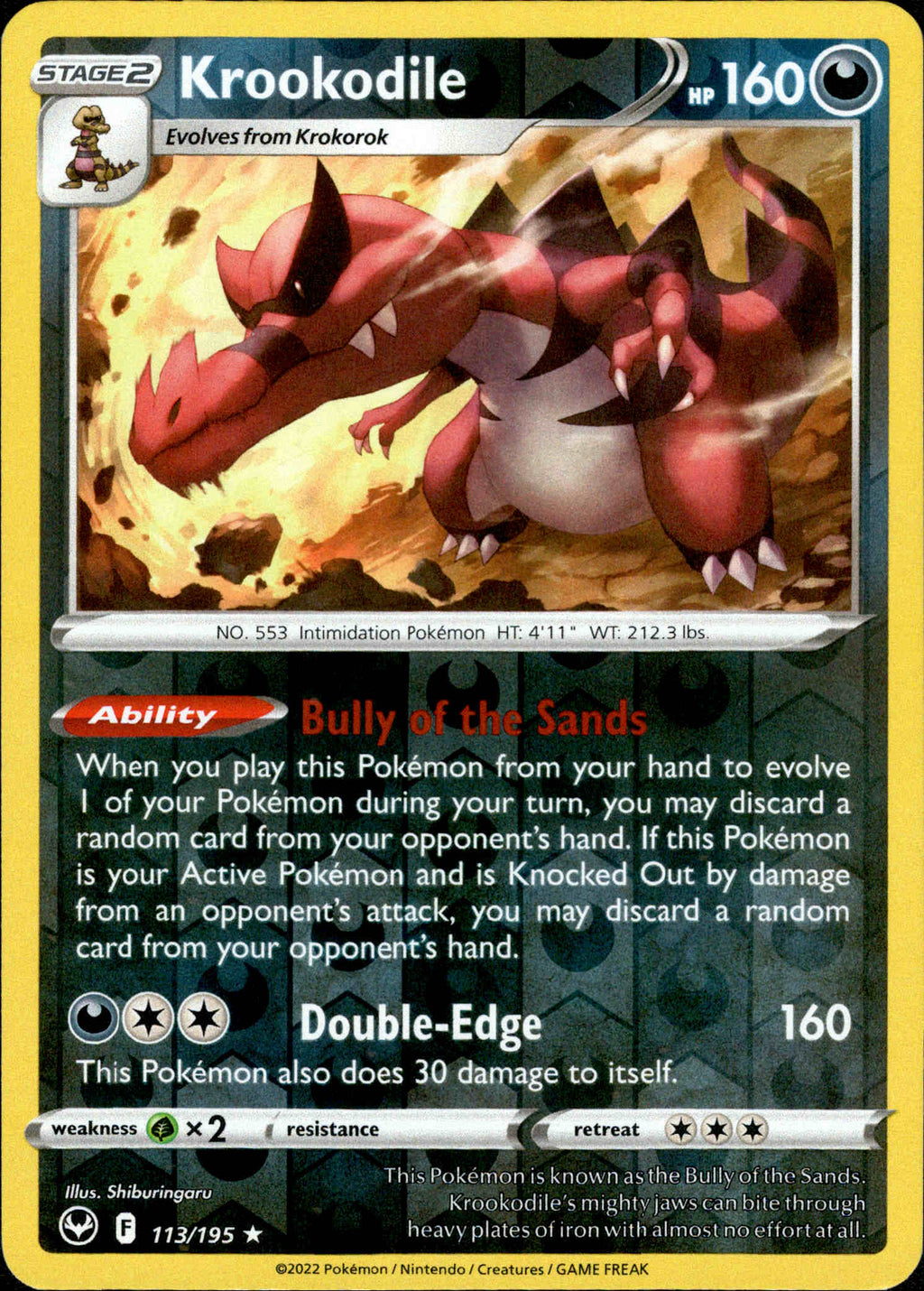 113/195 Krookodile Rare Reverse Holo Silver Tempest